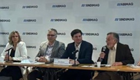 Estela Testa, presidente da Abimaq/Sindesam, Ricardo Mendes e Elzio Mistrelo, coordenadores do BS e diretores da Apecs, e Fernando Mentone – presidente do SINAENCO – SP.