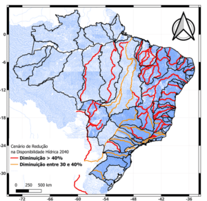 Mapa sobre cenário de redução na disponibilidade hídrica até 2040