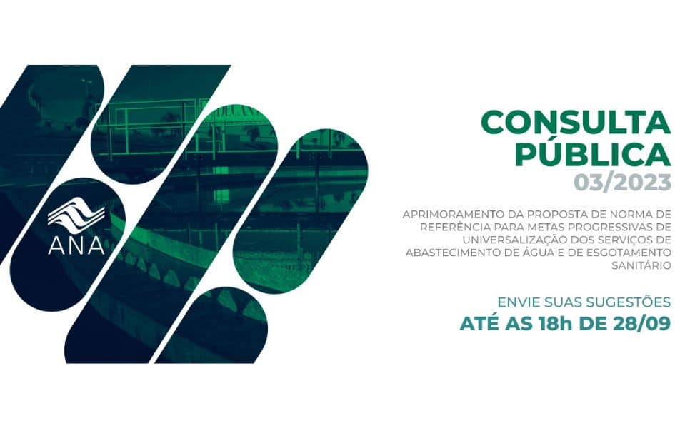 ANA | CONSULTA PÚBLICA Objeto Colher contribuições da sociedade para aprimoramento da proposta de norma de referência para metas progressivas de universalização dos serviços de abastecimento […]