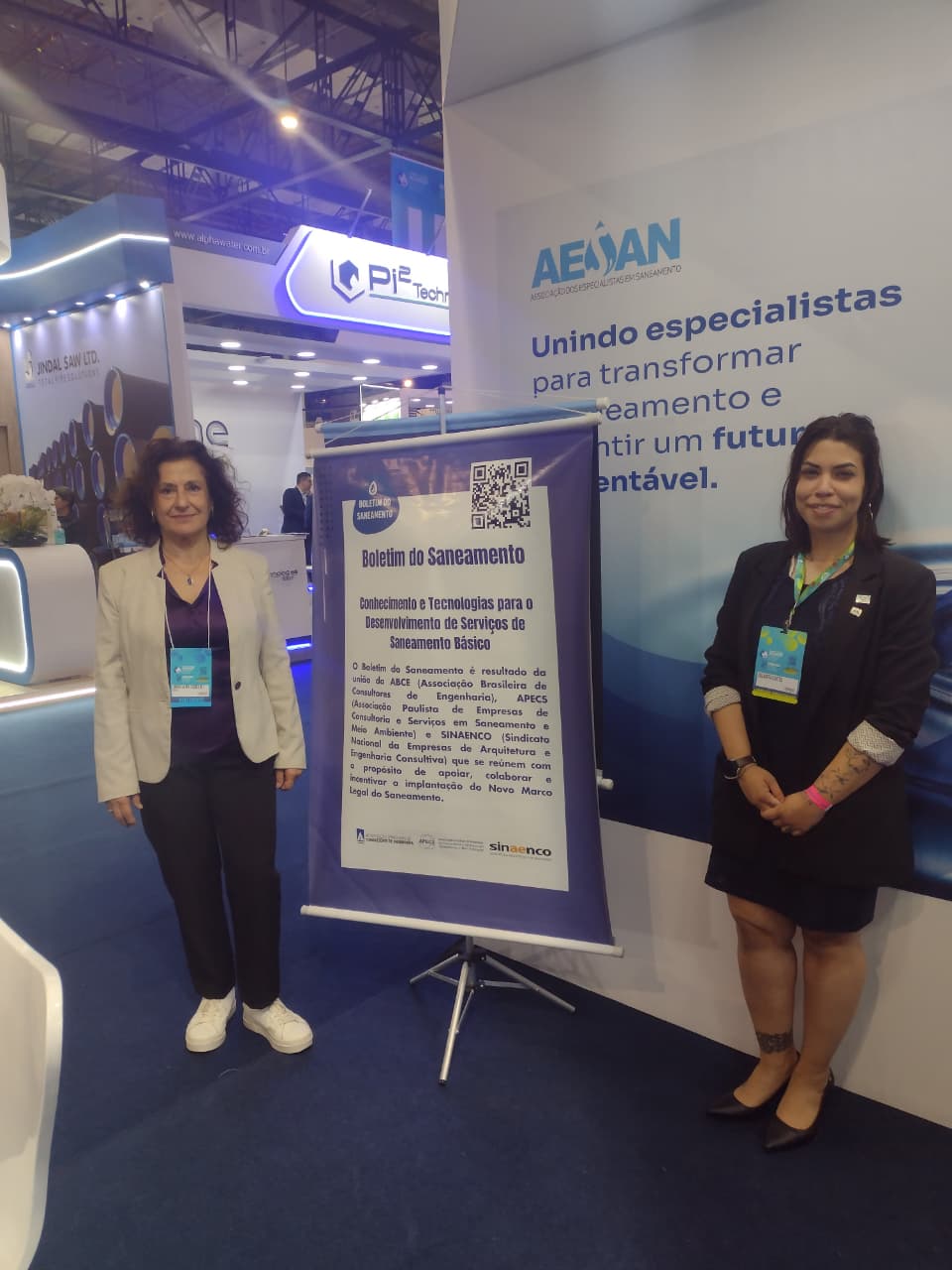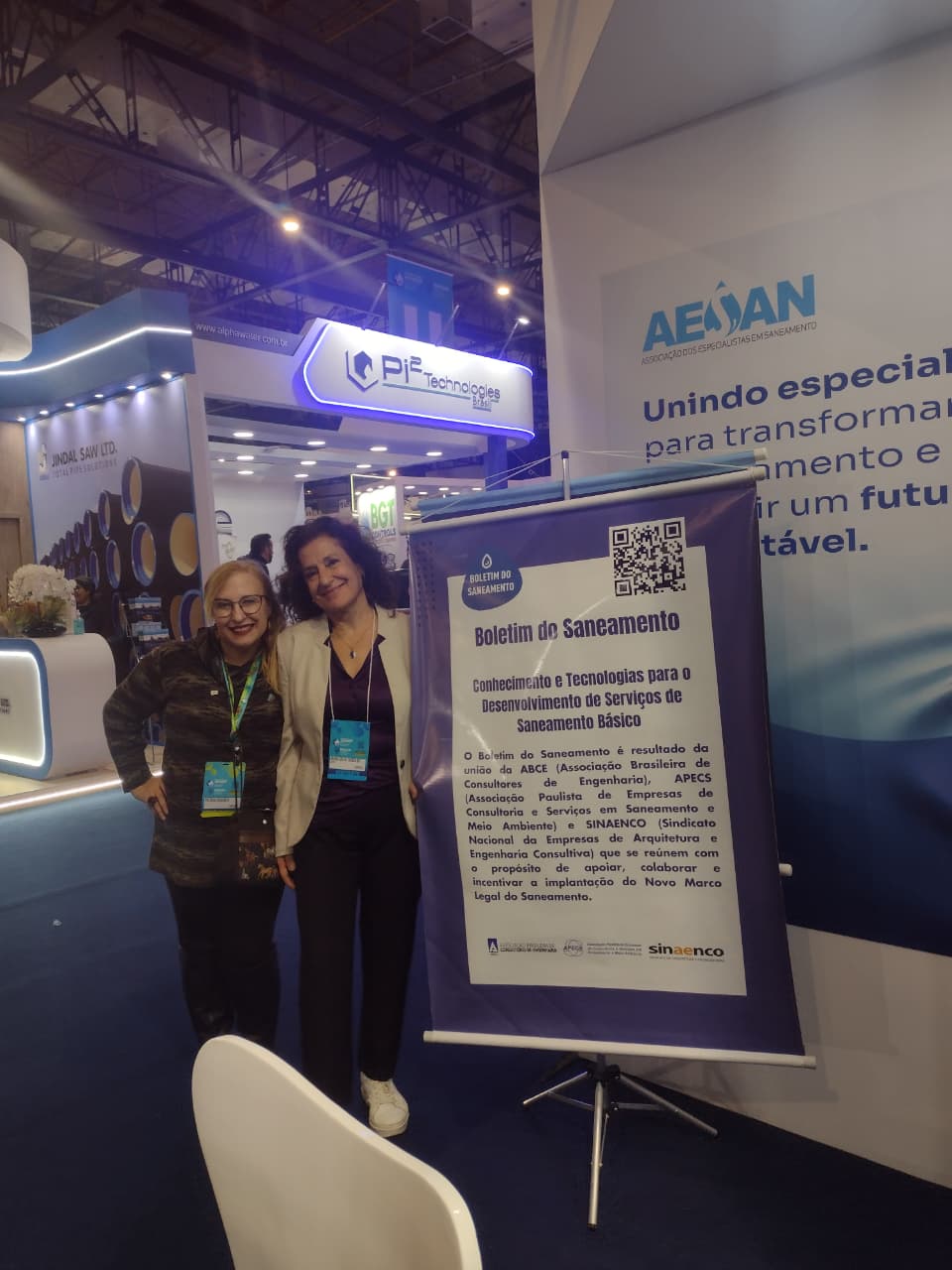 No primeiro dia da programação marcaram presença a Consultora do Boletim do Saneamento, Maria Saffa e a Presidente da AESAN, Sulamita França. Também estiveram presentes a diretora técnica da AESAN, Patrícia Goularth e Juliana Bazan, associada da Apecs. O material do Boletim do Saneamento (BS) encontra-se disponível no estande da AESAN, que fica localizado na Rua E19 da Feira.