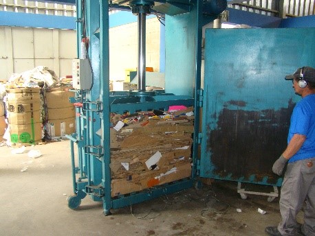 Papelão sendo prensado em cooperativa de catadores (Belo Horizonte/MG)