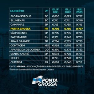 “Estamos orgulhosos com o destaque de Ponta Grossa no Índice de Soluções em Limpeza Urbana. Este sucesso reflete o empenho da nossa equipe em adotar práticas sustentáveis e inovadoras. Nosso foco vai além da limpeza urbana, abrangendo educação ambiental e inclusão social. Este é um passo significativo para um futuro mais sustentável, reafirmando nossa liderança ambiental no Paraná e no Brasil”, enfatiza o secretário municipal de Meio Ambiente, Sandro Bandeira.